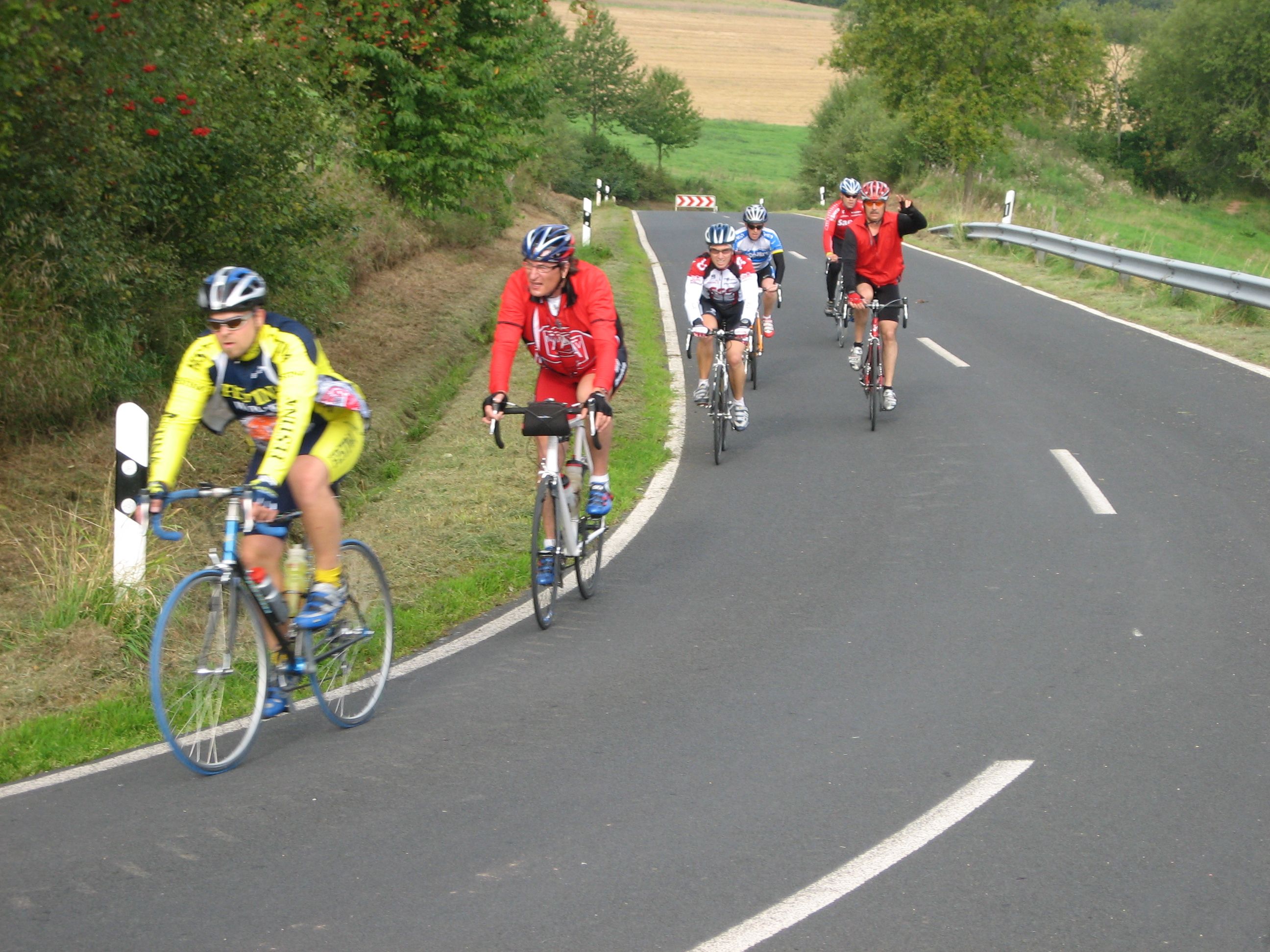 Unsere Praxis hat gezeigt, dass sich bei unseren Veranstaltungen schnell kleine Gruppen bilden, bei denen das Leistungsniveau auf einem Level ist. So fährt jeder sein eigenes Tempo - vor allem bergauf. Am vereinbarten Treffpunkt oder an der nächsten Wegkreuzung sammeln sich die Teilnehmer (Gruppen) wieder.