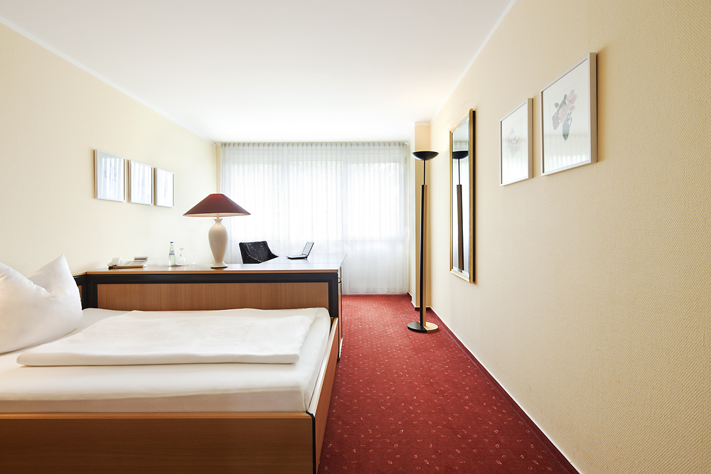 Unsere 89 modernen Zimmer überzeugen durch Ihre Geräumigkeit und ihre komfortable Ausstattung. Wir bieten Ihnen ein Zuhause auf Zeit! Alle Zimmer sind mit Dusche & WC, Fön, Flatscreen TV mit Sky Atlantic und Smart-TV sowie Telefon ausgestattet. Ein großer Schreibtisch und ein kostenfreier Highspeed-W-LAN Zugang schaffen ideale Arbeitsbedingungen in Ihrem Hotelzimmer. Die Zimmer verfügen zudem über eine kleine Küchenzeile mit Mikrowelle und Kühlschrank. Kostenfreie Parkplätze stehen Ihnen direkt vor dem Hotel zur Verfügung. Gerne heißen wir Sie auch in unserem Bistro in mediterraner Atmosphäre willkommen, in dem auch die Bundesliga Spiele auf Sky übertragen werden. Beginnen Sie Ihren Tag mit einem gesunden und ausgewogenem Frühstück und stillen Sie am Abend Ihren Hunger mit einem unserer zahlreichen leckeren Snacks sowie mit anderen Köstlichkeiten.