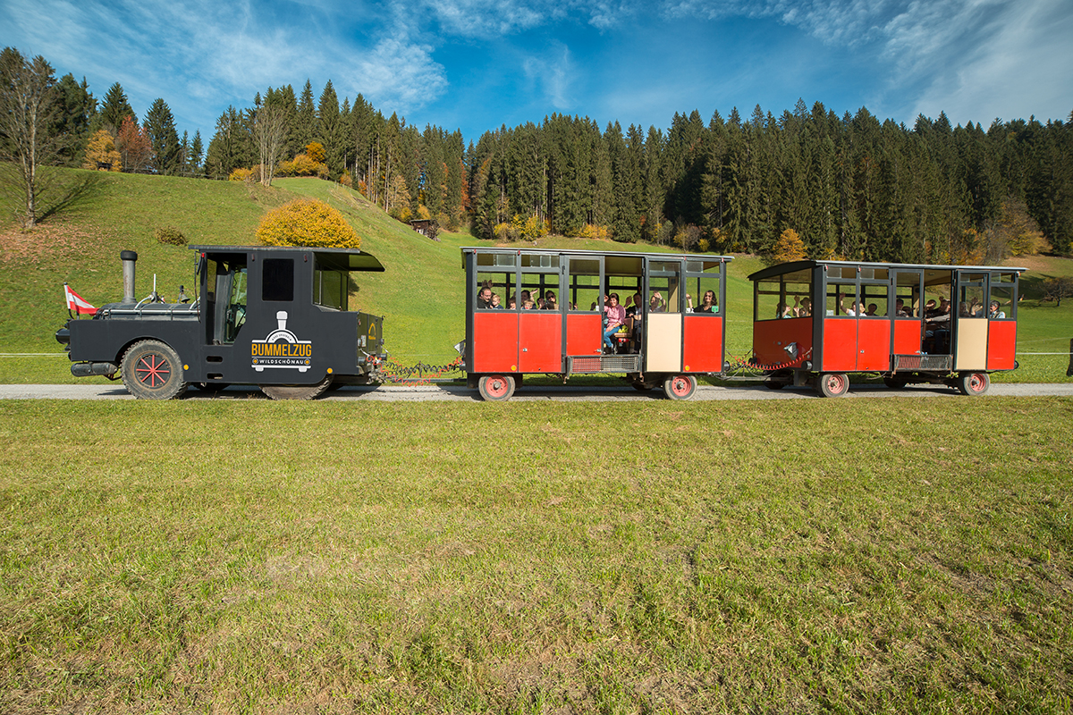 ... ist seit Sommer 1996 die Attraktion im Hochtal südlich des Inntales. Seit dieser Zeit verkehrt der Bummelzug täglich und stündlich von Mühltal zur Kundler Klamm. Er ist von Anfang Mai bis Mitte Oktober mit gemütlichen 10 km/h unterwegs und bringt Sie zu den schönsten Plätzen in einer typischen Tiroler Berglandschaft. In seinen drei Waggons bietet er 72 Personen Platz und ist damit ideal geeignet für Vereins-, Betriebs- und Familienausflüge.