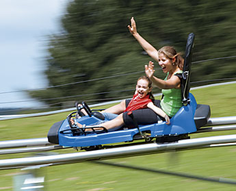 insteigen, losdüsen, Spaß haben - das ist das Motto auf der Egidi-Rodelbahn in St. Englmar! Der "Bayerwald Coaster" und der "Bayerwald-Bob" mit je 1.000 Metern Länge garantieren gleich doppeltes Rodelvergnügen für die ganze Familie!